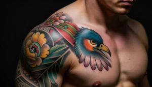 - Японский стиль: Яркие краски, традиционные мотивы и символика. Отлично смотрится на больших участках кожи (спина, рукава).